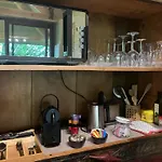 Along with coffee/tea making machines, the villa boasts an equipped kitchenette. On-site self-catering also includes a microwave, a fridge, and kitchenware.